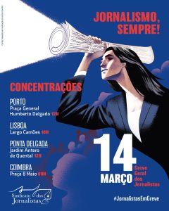 O Sindicato dos Jornalistas, cumprindo uma deliberação do último Congresso dos Jornalistas, convocou para o próximo dia 14 de Março uma greve geral, a primeira em 40 anos, perante o extremo agravamento da situação dos jornalistas e dos média, de que a crise do grupo Global Média é um desgraçado exemplo. Vale a pena por todos os meios, como o próprio Sindicato apela, manifestarmos a nossa solidariedade. É uma causa justa, pela defesa da dignidade e dos direitos da profissão e pela defesa da democracia nos média. Defender o trabalho digno e os direitos dos jornalistas e combater a degradação da profissão é também defender que os média se mantenham como pilares e não como problemas da democracia. Como refere o SJ, “Jornalistas sem direitos não são livres. E liberdade não se escreve sem jornalismo.”