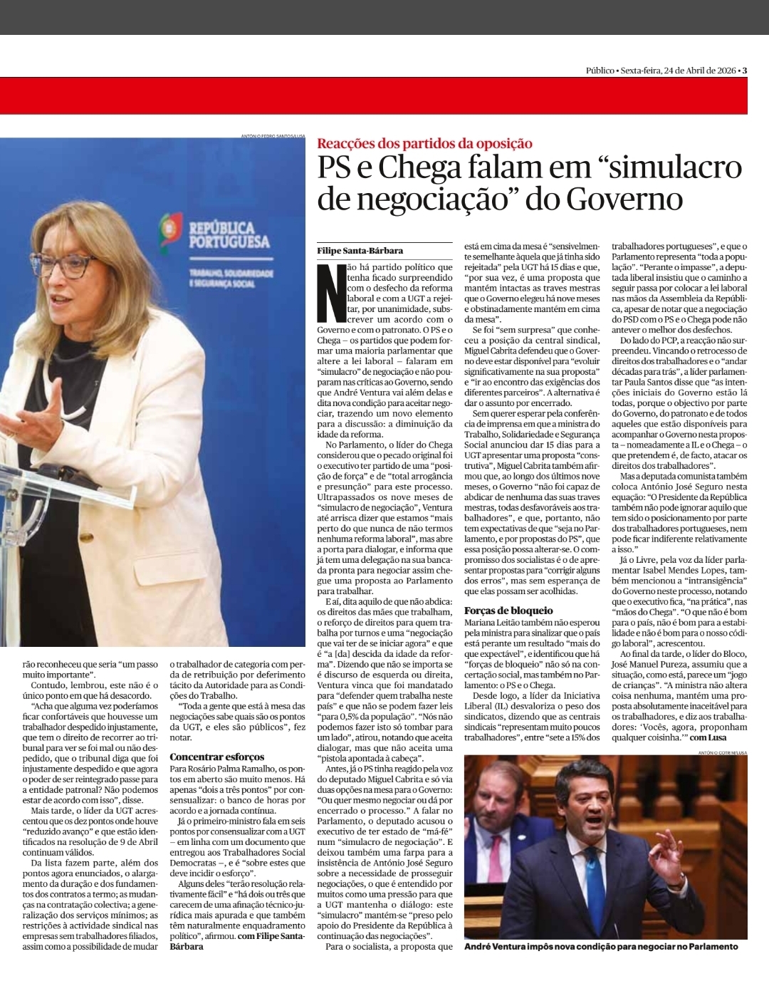 PÚBLICO – Pedro Norton/Ventura será o vencedor do confronto laboral?