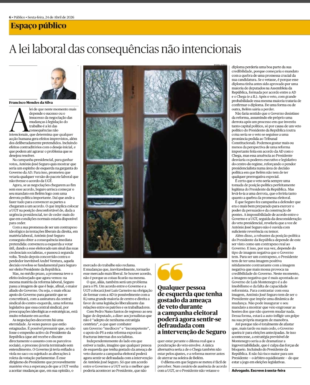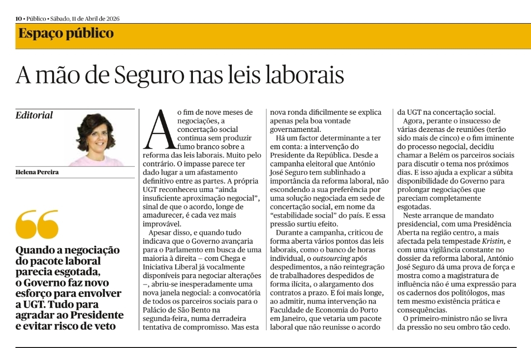 PÚBLICO – Helena Pereira/A mão de Seguro nas leis laborais