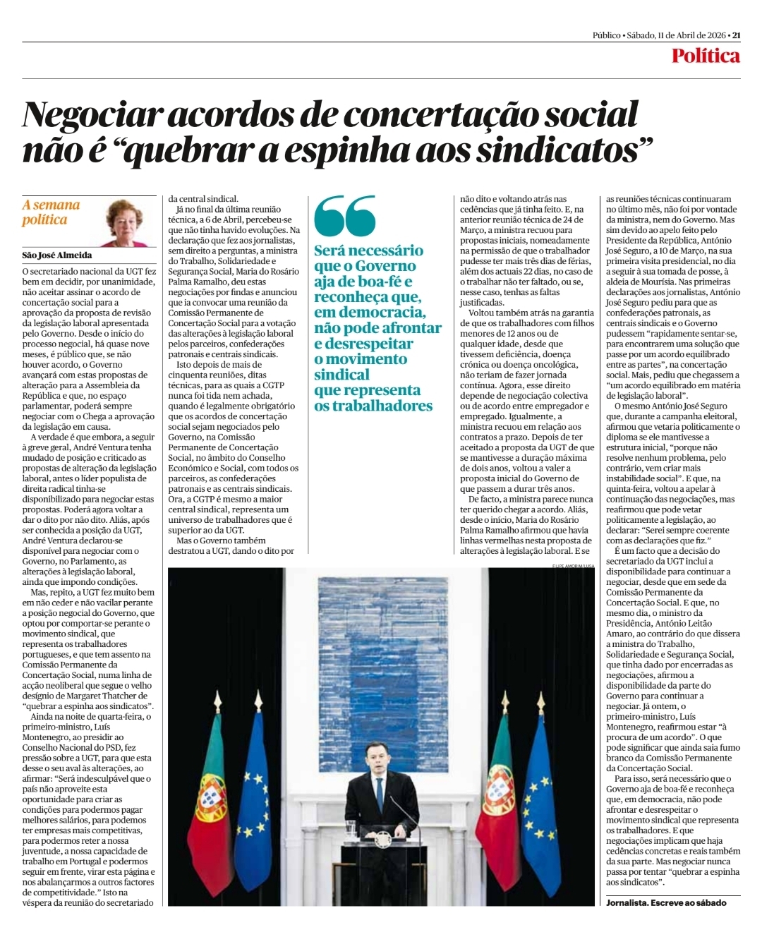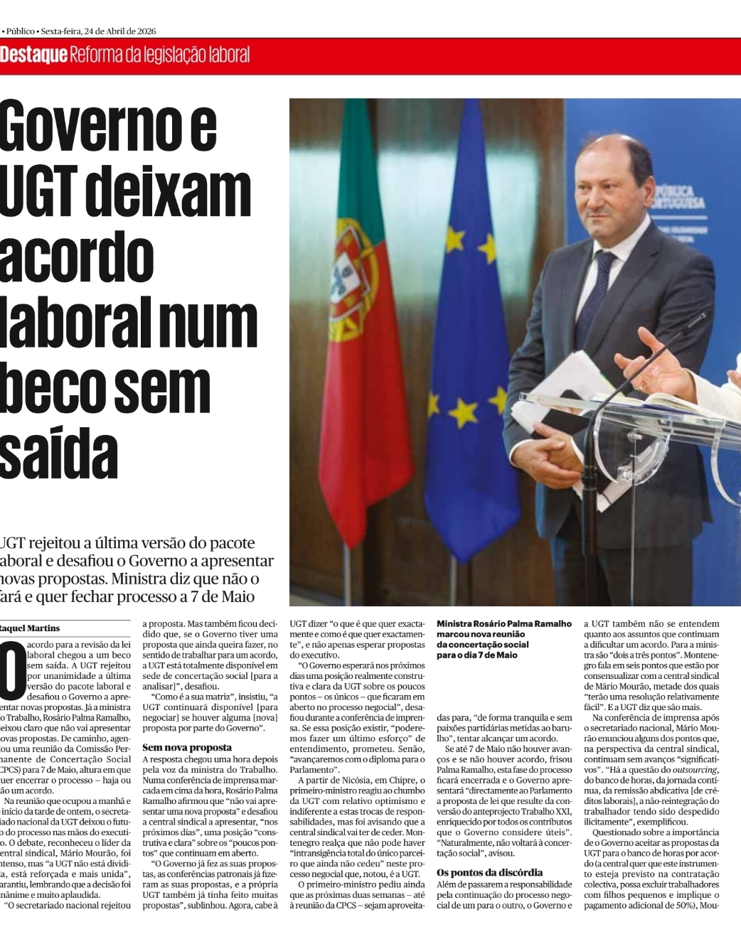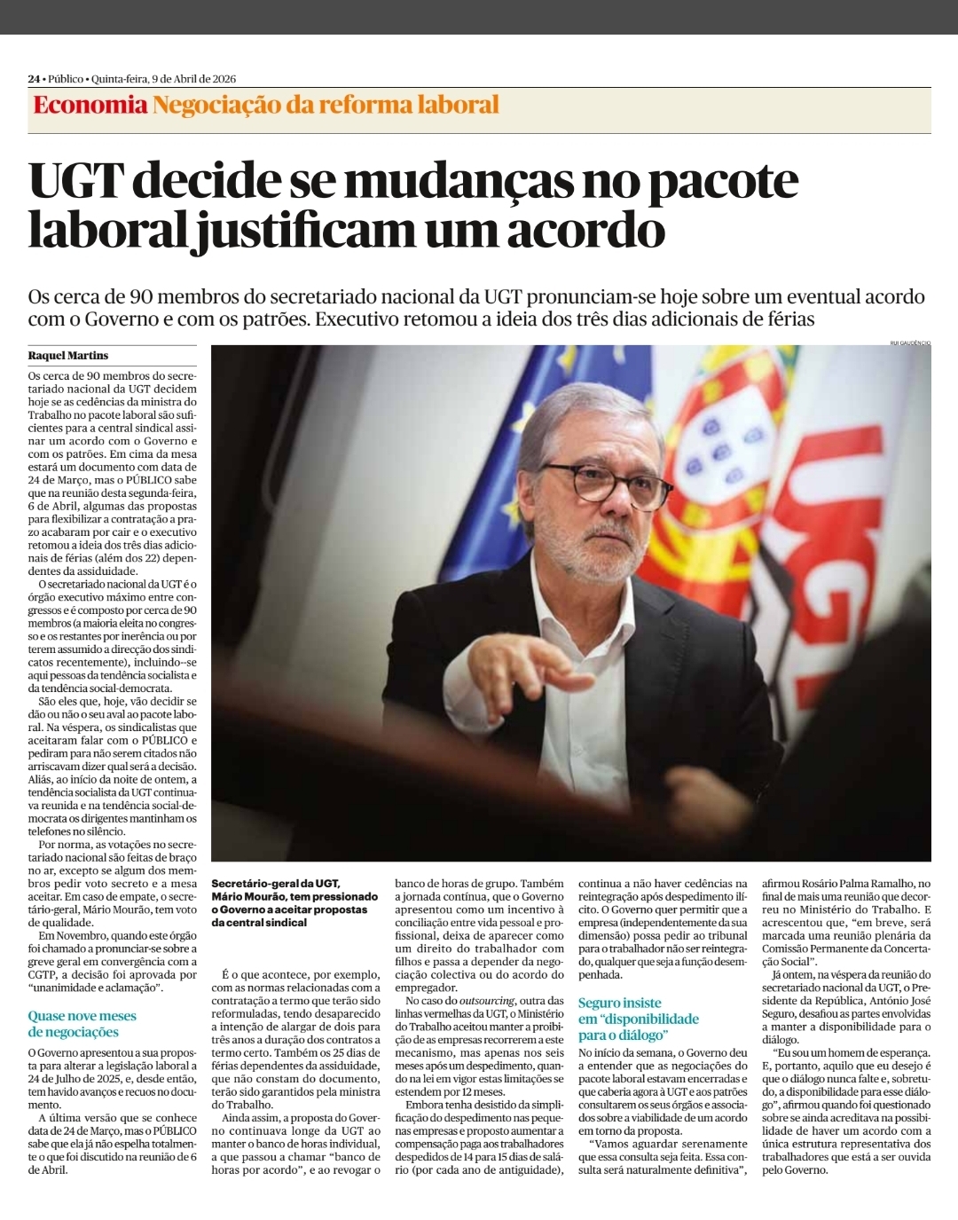 PÚBLICO – Partidos do governo elogiam UGT para tentar acordo sobre reforma laboral