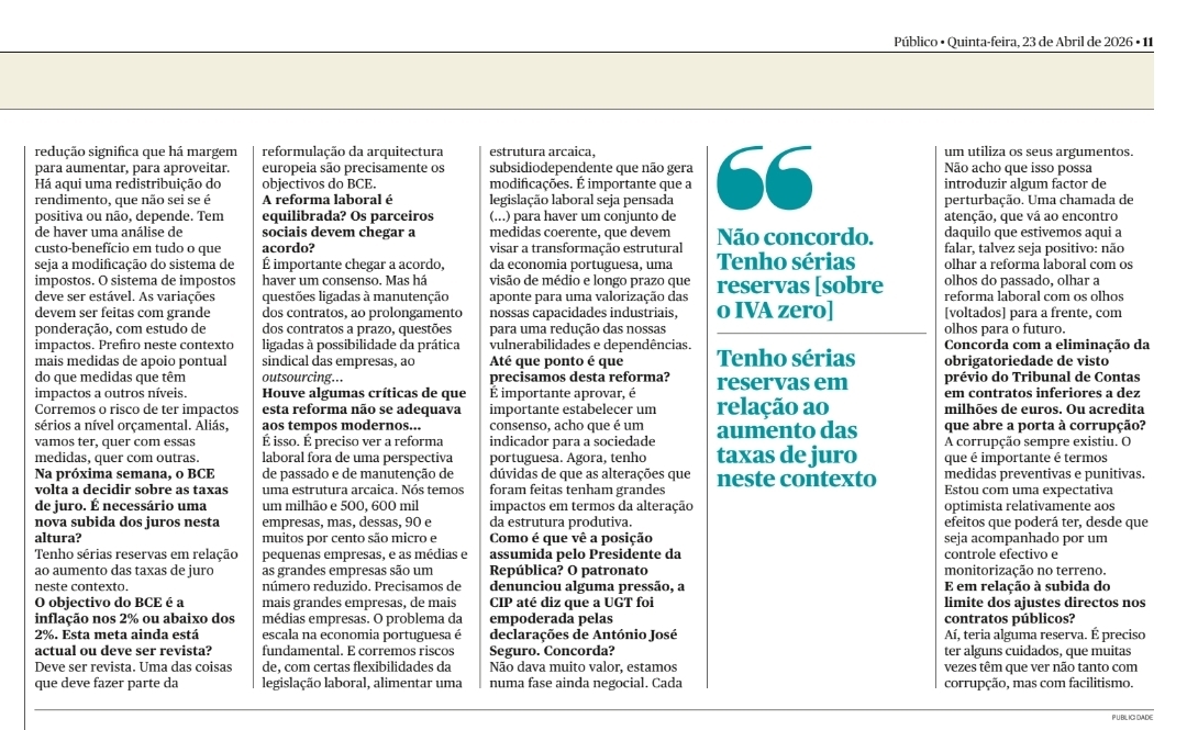 PÚBLICO – Entrevista com João Vieira Lopes, presidente da CCP