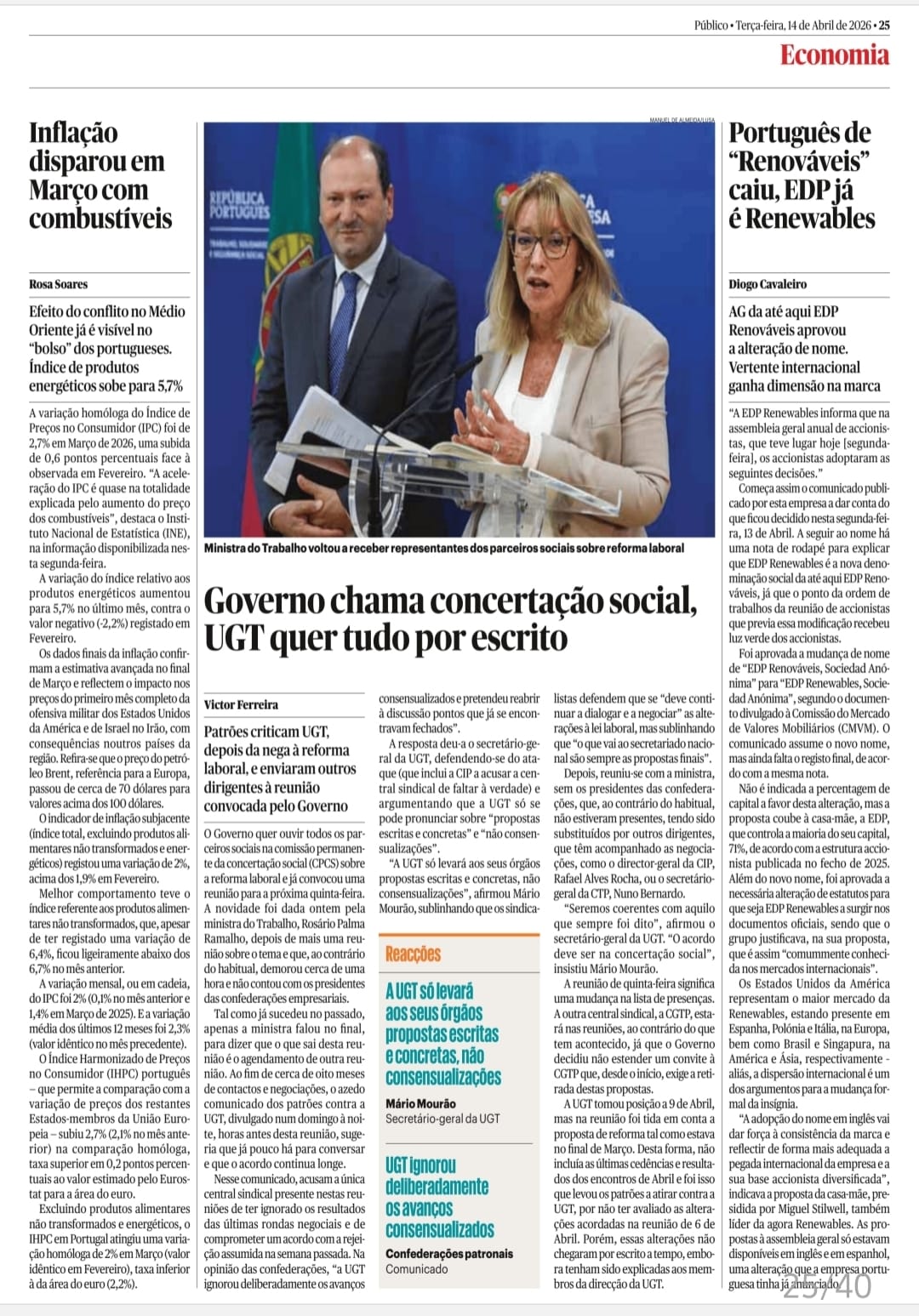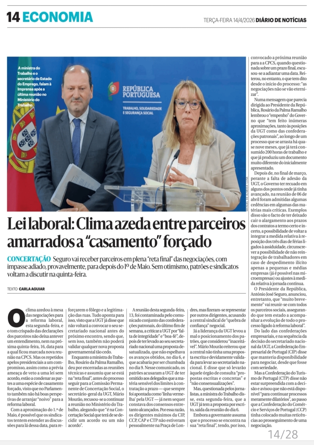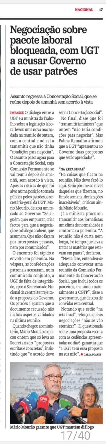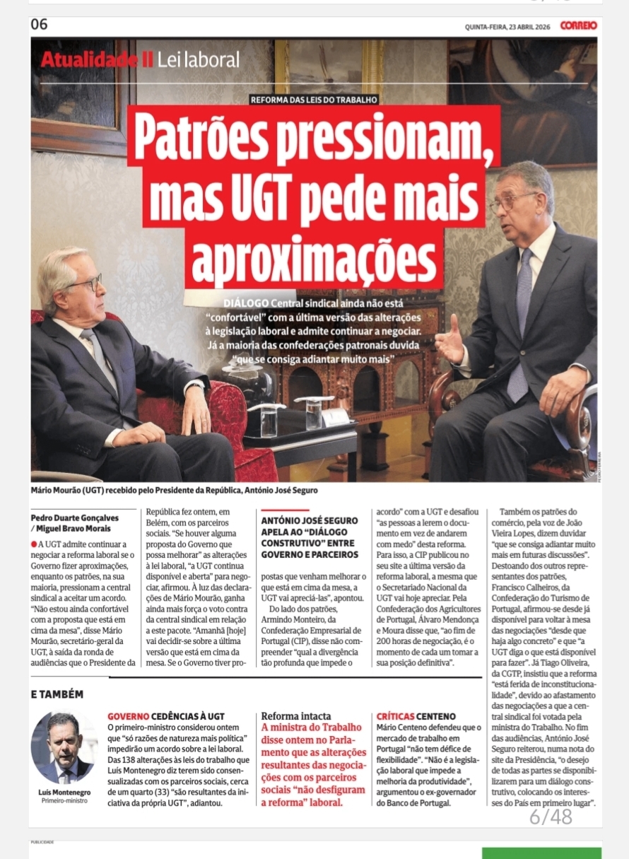 CORREIO DA MANHÃ – Governo e UGT têm um mês para se entenderem