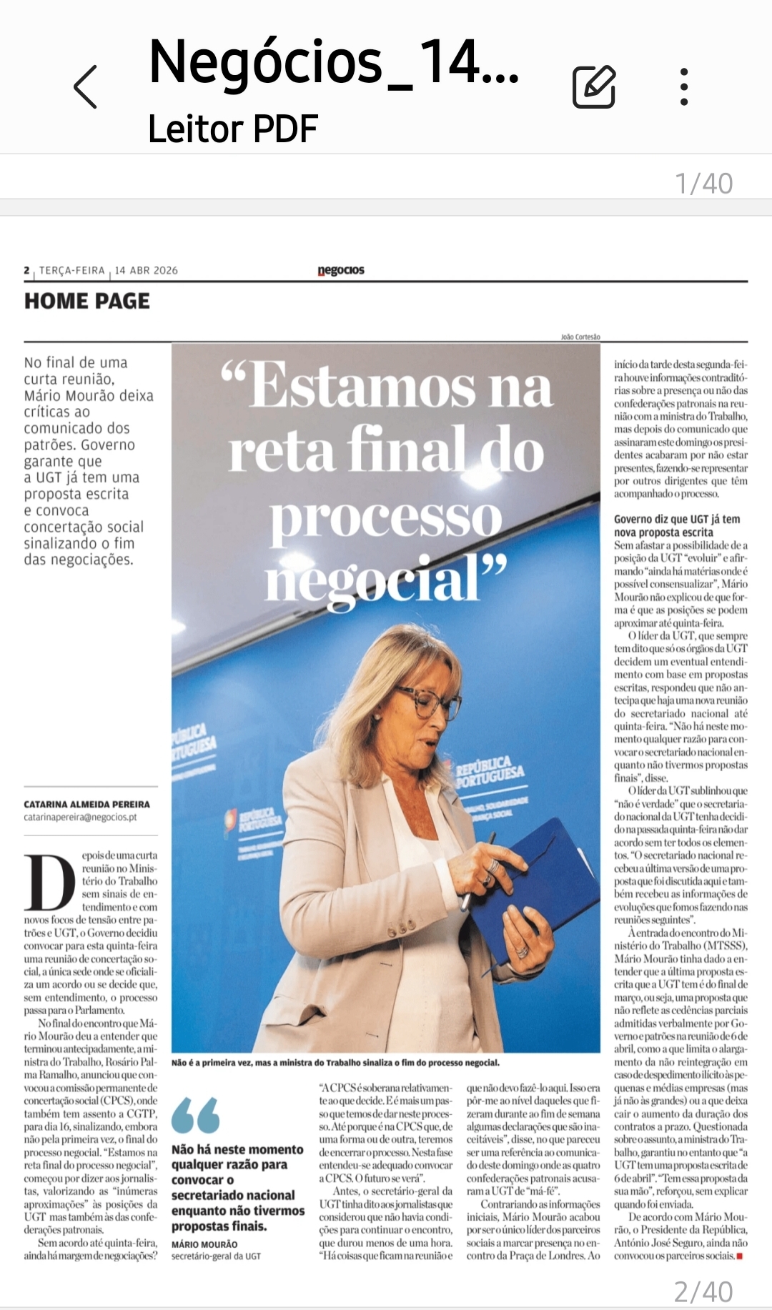 UGT/JORNAL DE NEGÓCIOS – Só com estas cedências não há possibilidade de acordo